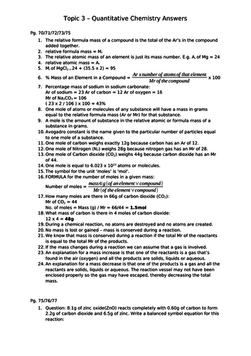 AQA GCSE Chemistry Topic 3 REVISION (Quantitative ... the lessons use a range of exam questions, quick tasks and quiz competitions to cover the content in c1 (atomic structure and the periodic table), c2 (bonding, structure and properties of matter), c3 (quantitative chemistry), c4 (chemical changes), c5 (energy changes), c6 (the rate and extent of chemical change), c7 (organic chemistry), c8 …
