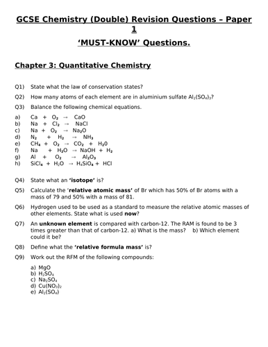 Chemistry Paper One - Quantitative Chemistry Chemistry Paper One - Quantitative Chemistry The revision questions and answers for GCSE Chemistry Paper 1, Quantitative Chemistry are below. Quantitative Chemistry - Mr and percentage by mass PDF File Quantitative Chemistry-Mr-and-percentage-by-mass-ANS PDF File Quantitative Chemistry-empirical-formulae-question PDF File